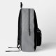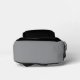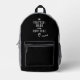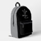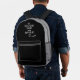 This volleyball themed backpack for girls features a the phrase, "The volleyball court is my happy place" in mixed typography and customisable name in a signature style font - the top (zipper portion) of the backpack is accented with a text pattern in white that reads "The volleyball court is my happy place" with tiny heart outlines (pattern can be deleted, if desired) - you can customise the backpack's colours, currently black & grey - by katz_d_zynes