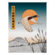 The water remains still after a bird takes flight, Vintage Japanese Travel poster.
