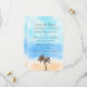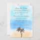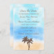 The design features tropical palm trees on a beautiful watercolor background of soft sand, cool blue sea and a stunning turquoise sky. Perfect for any beach celebration!
