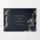 This watercolor gold splash trifold wedding of is perfect for a rustic wedding. The design features hand-painted gold splash in a dark blue background.