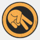 Downward peace sign hand in a circle, distressed orange or faded black & white graphic, on t-shirts, sweats, stickers, gift swag.