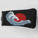 Abstract grunge illustration of the great Japanese wave of Kanagawa with red sun decoration