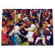 Pieter Bruegel the Elder (1525–1530 – 9 September 1569) was the most significant artist of Dutch and Flemish Renaissance painting, a painter and printmaker from Brabant, known for his landscapes and peasant scenes (so-called genre painting); he was a pioneer in making both types of subject the focus in large paintings. Art historians guess he was either born in Breda or Breugel (a village in the municipality of Son en Breugel), both located in the present-day Dutch province of North Brabant. He was a formative influence on Dutch Golden Age painting and later painting in general in his innovative choices of subject matter, as one of the first generation of artists to grow up when religious subjects had ceased to be the natural subject matter of painting. He also painted no portraits, the other mainstay of Netherlandish art. After his training and travels to Italy, he returned in 1555 to settle in Antwerp, where he worked mainly as a prolific designer of prints for the leading publisher of the day. Only towards the end of the decade did he switch to make painting his main medium, and all his famous paintings come from the following period of little more than a decade before his early death, when he was probably in his early forties, and at the height of his powers. As well as looking forwards, his art reinvigorates mediaeval subjects such as marginal drolleries of ordinary life in illuminated manuscripts, and the calendar scenes of agricultural labours set in landscape backgrounds, and puts these on a much larger scale than before, and in the expensive medium of oil painting. He does the same with the fantastic and anarchic world developed in Renaissance prints and book illustrations. Quote:Wikipedia
