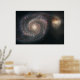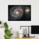 The graceful, winding arms of the majestic spiral galaxy M51 (NGC 5194) appear like a grand spiral staircase sweeping through space. They are actually long lanes of stars and gas laced with dust. This sharpest-ever image of the Whirlpool Galaxy, taken in January 2005 with the Advanced Camera for Surveys aboard NASA's Hubble Space Telescope, illustrates a spiral galaxy's grand design, from its curving spiral arms, where young stars reside, to its yellowish central core, a home of older stars. The galaxy is nicknamed the Whirlpool because of its swirling structure. The Whirlpool's most striking feature is its two curving arms, a of so-called grand-design spiral galaxies. Many spiral galaxies possess numerous, loosely shaped arms which make their spiral structure less pronounced. These arms serve an important purpose in spiral galaxies. They are star-formation factories, compressing hydrogen gas and creating clusters of new stars. In the Whirlpool, the assembly line begins with the dark clouds of gas on the inner edge, then moves to bright pink star-forming regions, and ends with the brilliant blue star clusters along the outer edge. Some astronomers believe that the Whirlpool's arms are so prominent because of the effects of a close encounter with NGC 5195, the small, yellowish galaxy at the outermost tip of one of the Whirlpool's arms. At first glance, the compact galaxy appears to be tugging on the arm. Hubble's clear view, however, shows that NGC 5195 is passing behind the Whirlpool. The small galaxy has been gliding past the Whirlpool for hundreds of millions of years. As NGC 5195 drifts by, its gravitational muscle pumps up waves within the Whirlpool's pancake-shaped disc. The waves are like ripples in a pond generated when a rock is thrown in the water. When the waves pass through orbiting gas clouds within the disc, they squeeze the gaseous material along each arm's inner edge. The dark dusty material looks like gathering storm clouds. These dense clouds collapse, creating a wake of star birth, as seen in the bright pink star-forming regions. The largest stars eventually sweep away the dusty cocoons with a torrent of radiation, hurricane-like stellar winds, and shock waves from supernova blasts. Bright blue star clusters emerge from the mayhem, illuminating the Whirlpool's arms like city streetlights. The Whirlpool is one of astronomy's galactic darlings. Located 31 million light-years away in the constellation Canes Venatici (the Hunting Dogs), the Whirlpool's beautiful face-on view and closeness to Earth allow astronomers to study a classic spiral galaxy's structure and star-forming processes.