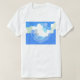 This mens wear white shirt with it's the white light imagery shows blue and yellow stone like shapes with and white light shining threw representing the light to heaven.
