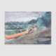 This design features a watercolor painting by the American artist Winslow Homer (1836–1910). It shows a solitary figure, a hunter or guide, relaxing in a wilderness landscape with a pipe in his hand. The man is resting on rocks with his canoe, in front of a large lake. There is a forest of trees in the background. The painting captures a moment of quiet contemplation, as well as the ruggedness and solitude of the American spirit. The figure of the guide is positioned slightly off-centre, emphasising the vastness of the surrounding wilderness and creating a sense of isolation and self-reliance. The entire scene speaks to the romanticised idea of the American frontier and the allure of an untamed landscape. The original artwork was painted in 1895.
