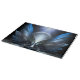 The piece as the name suggest has a central focus on wing like fractal structures that surround a bisected orb.