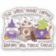 Cast a spell on your morning with this enchanting sticker featuring the phrase “The Witch Needs Coffee Before Any Hocus Pocus.” Adorned with cute Halloween-themed coffee brews, like jack-o’-lantern cups, ghost lattes, and witchy mugs, this whimsical design is perfect for anyone whose magic doesn’t kick in until after their first sip. A fun and festive tribute to spooky season and caffeine cravings!