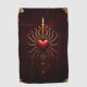 The wonderful beautiful art of gothic elegance. Romantic design with a central motif of a burning candle set within a heart-shaped frame. The candle is surrounded by intricate, golden, spider-like branches, and the heart is adorned with red jewels. The background is a deep crimson, and the image is framed by ornate, gold scrollwork with dripping red accents. The overall mood is one of gothic elegance and mystery.