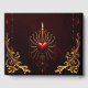 The wonderful beautiful art of gothic elegance. Romantic design with a central motif of a burning candle set within a heart-shaped frame. The candle is surrounded by intricate, golden, spider-like branches, and the heart is adorned with red jewels. The background is a deep crimson, and the image is framed by ornate, gold scrollwork with dripping red accents. The overall mood is one of gothic elegance and mystery.