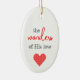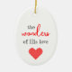 White and red oval ornament with words "The Wonders of His Love." A meaningful and festive addition to your Christmas tree.