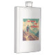 The product is a good size and came exactly as it was pictured. The lid is not attached to the flask, which could be dangerous on drunken nights... The print came out surprisingly well and looks very sharp. Would definitely recommend.