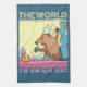 A kitchen towel or tea towel to celebrate an underappreciated genius, featuring a groundhog singing into the soap while stood in a pink bathtub, surrounded by bubbles and a stunned rubber duck. With tasteful starfish and shell shower curtain. The editable text reads "THE WORLD IS NOT READY FOR MY TALENTS", change to another caption if preferred, by clicking "Personalise this template".