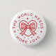 The world needs more love kindness peace quotes pink and red coquette preppy girly heart with bow aesthetic human rights activist protest button badge pins outfit accessory gift.