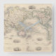 The World on Mercator's Projection in outline colour with some land masses in full colour. Surrounded by drawings of cities, and sights such as the Pyramids at Giza and Niagara Falls. British Colonies are highlighted in red and steam routes to the Colonies in blue.