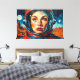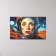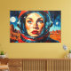 This vibrant digital art features an astronaut gazing into space.