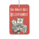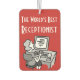 Office Worker Car Air Freshener. The World's Best Receptionist. Red background.