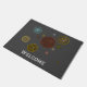 These mandalas were designed for the various signs of the zodiac, depicting gemstones in the centre of each surrounded by elements representing the sign, such as the symbol for the sign, the constellation, and the alchemical symbol for the sign's element, as well as filigree vines and weaves wrapping it all into a solid image. The mandalas are arranged into a design reminiscent of the solar system with each sign representing the associated planet or celestial body. Customise the text on this doormat with your own preferred greeting or remove it entirely to make a unique decoration for your entryway.