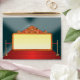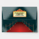 An ornate yellow and orange theatre marquee makes anyone the star of the show on this invitation envelope. The marquee is blank and waiting for you to print an address and the red carpet leads into the event with spotlights shining in the night sky behind it. The marquee and red carpet are repeated on the reverse to highlight a return address. Great for a birthday party, Sweet 16 or any event honouring someone special. Available with matching products.