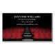 These modern performing arts centre business cards feature a darkly lit theatre filled with red velvet cinema chairs to seat theatre guests. A chic theatre event planner or theatrical production crew card for someone who does event planning or other fine art work.