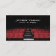 These modern performing arts centre business cards feature a darkly lit theatre filled with red velvet chairs to seat guests. A cool theatre event planner or theatrical production crew card for someone who does event planning or other fine art work.