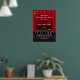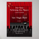 A graphic illustration of a theater stage with red curtains on a Performing Arts Stage Show Poster. Original artwork: Copyright Charmaine Paulson