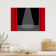 A graphic illustration of a theatre stage with a spot light and red curtain on a variety of products.  Original artwork: Copyright Charmaine Paulson 5/13/08