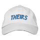 Custom Embroidered Alternative Apparel Basic Adjustable Baseball Cap Hat in White printed with THEIRS in Blue text typography lettering and digital graphic design by TheFabricSeal print on demand shop at Zazzle.com #ZazzleMade https://www.zazzle.com/store/thefabricseal TheFabricSeal©️Original.