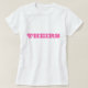 Basic Classic T Shirt in White printed with THEIRS in Hot Pink text typography lettering and digital graphic design by TheFabricSeal print on demand shop at Zazzle.com #ZazzleMade https://www.zazzle.com/store/thefabricseal TheFabricSeal©️Original.