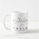 Thelma spelled out in amino acids as T H E L M A (Threonine Histidine Glutamic acid Leucine Methionine Alanine) on a mug for the scientist in you.