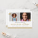 Sleek modern graduation photo card announcement and invitation with space for 2 photos, perfect to include a childhood photo alongside the grad's current senior picture. Personalize the design with your custom photos, name, graduation details and grad party invitation on the back. Great for a middle school, junior high, high school or college graduation party. Use the design tools to change text fonts and colors and create your own unique one of a kind design!