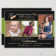 A stunning rendering featuring three photo windows of your graduate. The ebony background has a wide green band to accent the photos and pencil-thin tan borders. The Cap and Diploma can be dragged to any location, made larger or smaller or eliminated.