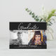 Celebrate the remarkable journey of your graduate with this beautifully designed 'Then and Now' graduation announcement. This flat card is elegantly bordered in black, providing a timeless frame for the two most significant milestones of your graduate's academic career. On one side, you can add a baby or toddler photo of the graduate, which will be tastefully transformed with a black and white filter, juxtaposing the past with the present. The right side is reserved for a current photo, showcasing the accomplished graduate.