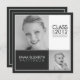Modern blocks of black and white highlights two photos of your graduate. Use a childhood photo and today's photo for a "through the years" effect or two current photos of your child - the choice is yours. All text can be customised to use as a party invitation (as shown) or to change into an announcement only by modifying the text on the back to suit your needs.