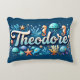 Decorative pillow showcasing Theodore's name surrounded by adorable sea creatures including jellyfish, seahorses, and starfish. Adds ocean charm to any room decor.