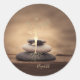 Therapist Zen Stones, Gold Tree Silhouette Brown Classic Round Sticker