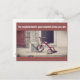 It's a rough town when people are stealing wheels off your tricycle. This snarky/sentimental postcard is fun and heartfelt at the same time. Make an old friend smile!