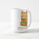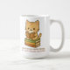 One of a kind teacher coffee mug featuring a cute kitty reading a book on top of a stack of books and an "There is no such thing as too many books" headline.