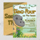 Celebrate your little dino lover's special day with this adorable There's a Dino Four on the Loose invitation! Featuring a friendly cartoon T-Rex in a lush jungle setting, this colorful and playful design is perfect for your child's 3rd birthday party.