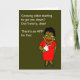 This design was created using digital art. The front of the card features a middle-aged woman wearing a red dress. Her words set up the explosive message on the inside.