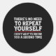 There's No Need To Repeat Yourself Funny Mom Dad J Classic Round Sticker