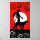 A stylish art deco fashion silhouette of woman and dog set against a bright white moon, with accents of stylised swirling branches and leaves in white and black. Available in twelve colour combinations.