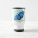 Thermal travel Mug with beautiful transformational blue butterfly... on the peaceful organic planet... great for hot or cold drinks get yours today this image can be put on any product available here! Find out more about us at : http://www.peaceful-organic-planet.com