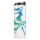 A wonderful travel mug to take to class with a vibrant dancer in blues and greens.
