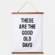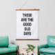 These Are The Good Old Days wall hanging tapestry in bold black lettering. It makes great decor for dorm rooms and apartments.