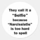 For the sarcasm lover in all of us. Check out this witty “They Call it a Selfie Because Narcissistie is Too Hard to Spell” design on apparel and gifts.