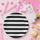 Enhance your next gathering with our exquisite set of paper plates featuring captivating thick, bold black and white stripes. Whether you're hosting a lively summer picnic, a vibrant birthday bash, or a private barbecue, these sturdy paper plates will beautifully complement your table setting. Simplify your entertaining experience and leave a lasting impression with these striking disposable black and white striped paper plates.