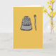 Blank greeting card featured hand drawn thimble and needle on a yellow background.