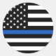 Thin Blue Line Police Sticker - American flag in Police Flag colours.This thin blue line sticker is a perfect for envelopes, letterhead, thank you, decorations for retirement or graduation parties, and giveaways at events or to kids at school programs from a visiting police officer. For law enforcement officers, detective, sergeant, lieutenant, captains, and deputy, chief of police, first responders and front line workers and supporters. See our collection for police patches and personalised id patches. COPYRIGHT © 2020 Judy Burrows, Black Dog Art - All Rights Reserved. Thin Blue Line American Flag Classic Round Sticker