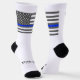 Thin Blue Line American flag law enforcement Socks. Custom patriotic template design for police officer, friend, husband, brother, son, wife, girlfriend, sister, father, mother, grandpa, dad, kids, son, retired person etc. Black and gray US flag with blue line. USA pride. Show your support and honor for the line of duty.